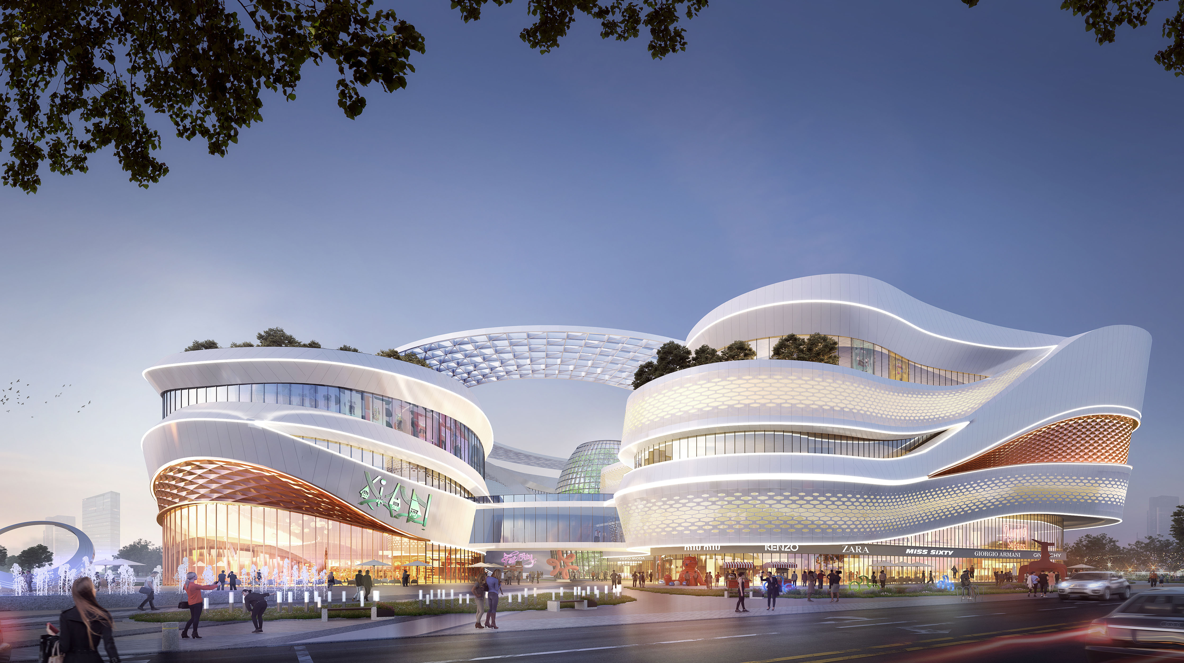 项目地点位于西安高新区国际社区,定位都市轻度假消费目的地。设计以“丝路文化”这一区域乃至整个西安绵延千年的文化线索为概念,采用分散建筑单体,整体连通的方式来进行规划布局。