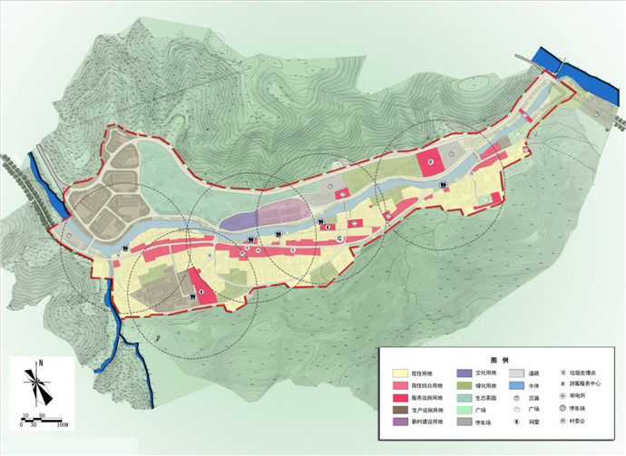本次规划中依托古山重厚重的文化底蕴,调研“薛氏家庙、茄萣公园”等闽台同源的见证,深挖“千年古樟、宋代水尾塔、昭灵宫、许愿古樟、林氏祖厝、盂宁堡、大社古城墙、鹅卵石古巷道”等旅游资源,通过对宋江阵、赛大猪、提线木偶、巴音大鼓吹、山重婚俗”等传统技艺的梳理,沿用“修旧如旧”的保护手法,形成“一环、一带、六区”的规划结构,通过界定“核心保护区、建设控制地带、环境协调区”等三个保护层次,通过古山重传统村落保护与发展相互协调,将古山重打造为马洋溪生态旅游区的又一“旅游明珠”。